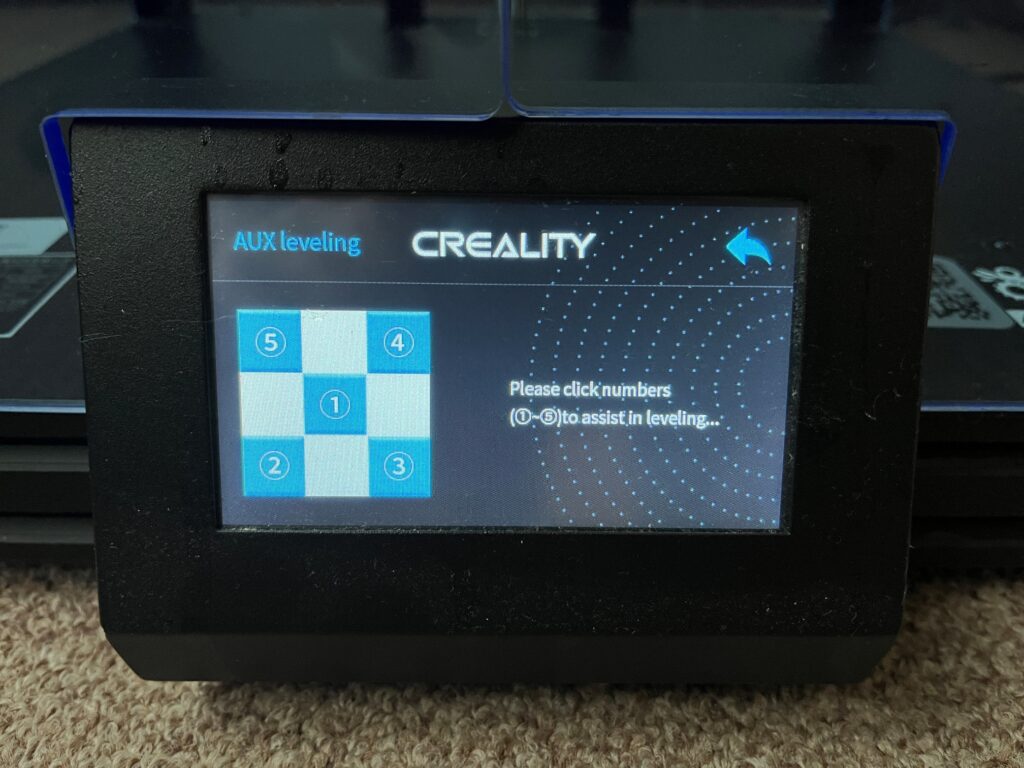 Klikněte na body (1/2/3/4/5) na obrazovce, abyste přesunuli trysku do každé vyrovnávací polohy.