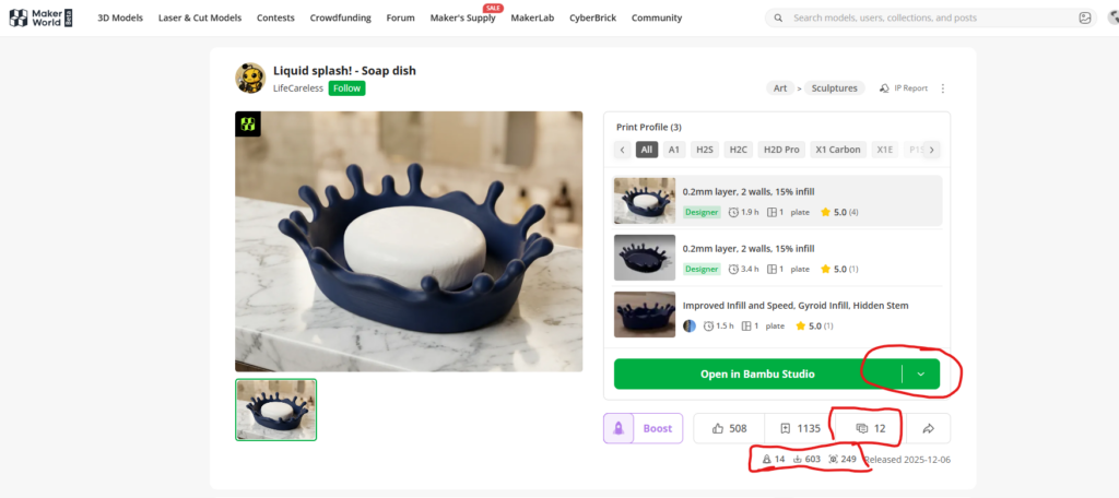 Makerworld díky komunitní validaci často lépe ukazuje, jak se objekt reálně tiskne.